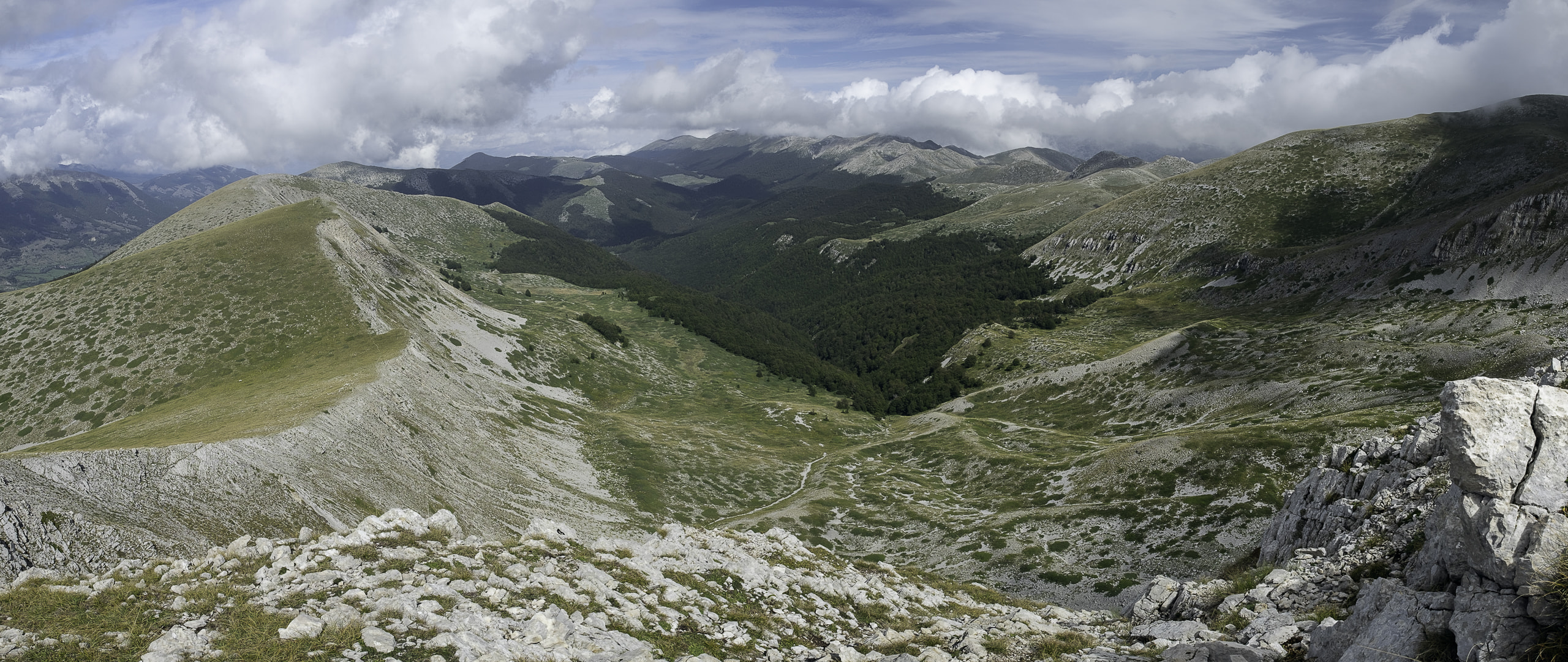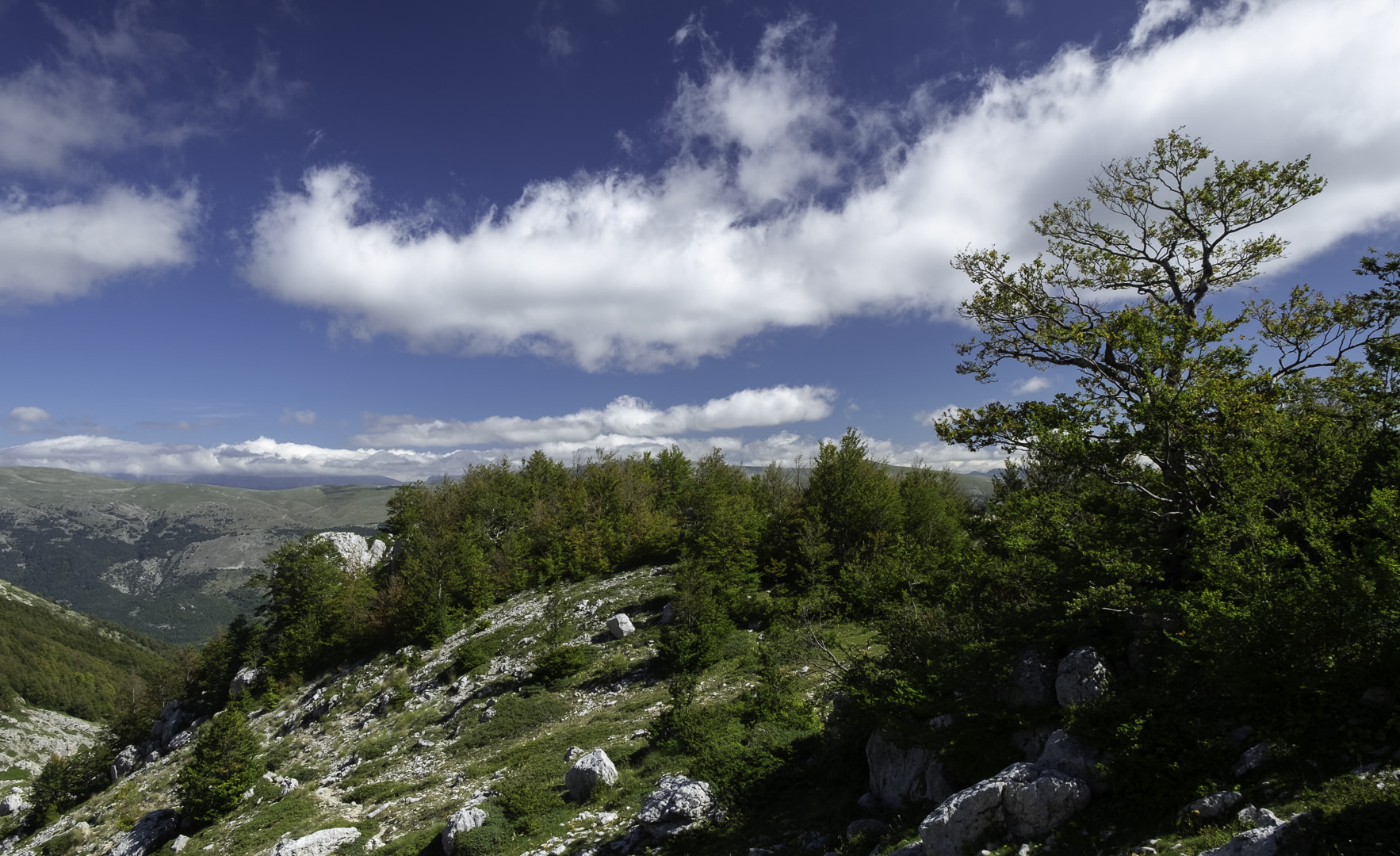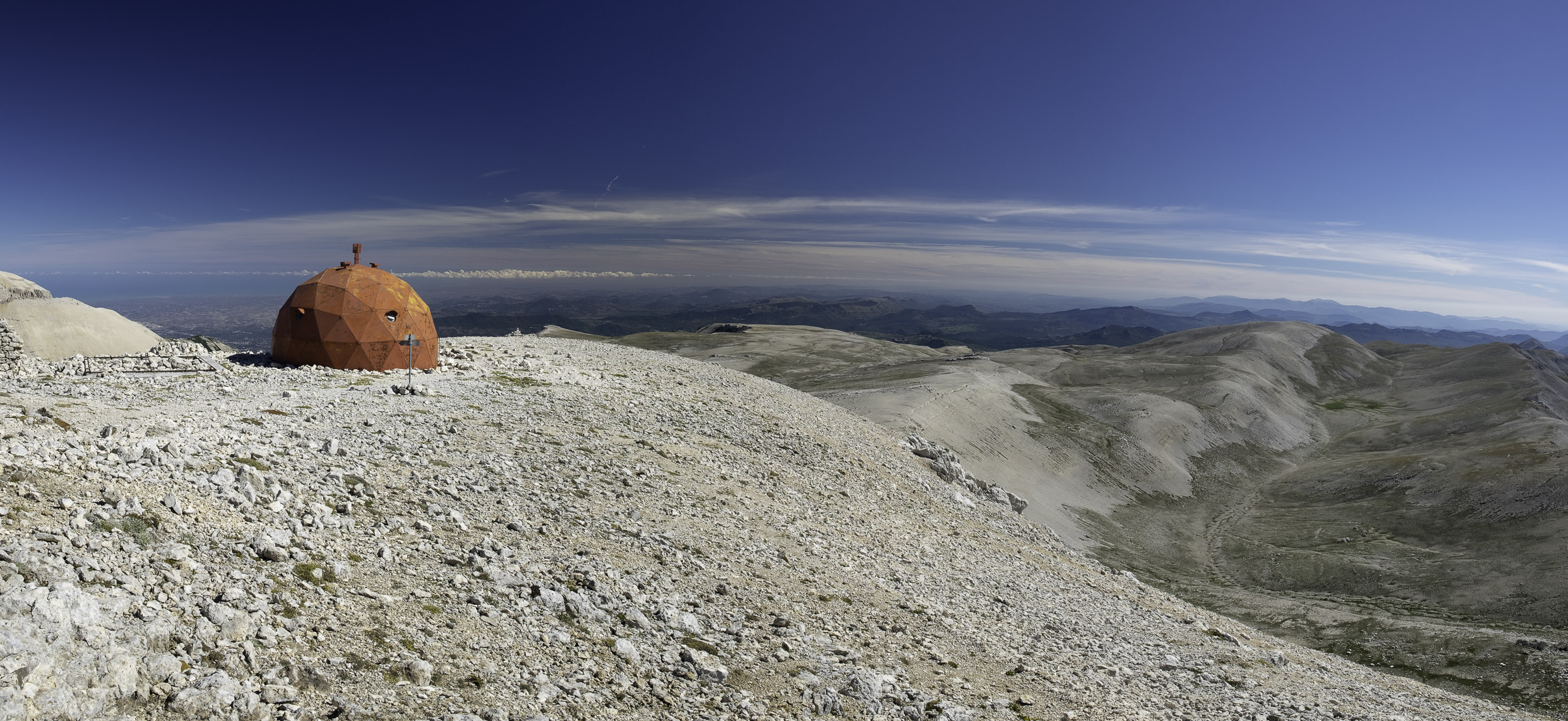 Leaving all that buzz amidst millions of tourists behind, the next two weeks were filled with hiking and camping in the Apennine Mountains of central Italy. The Parco Nazionale d’Abruzzo is a protected area for almost 100 years, and it shows: The valleys are overgrown with ancient beech forests where bears (found a paw print!) and deer live. Mountain tops were full of chamois, it was quite a safari. At last, I climbed the sun-scorched moonscapes of Monte Amaro, where I seemed to have all of the Majella Range for myself. And what a view it was, under one of the most brilliant, clear skys I have ever seen.