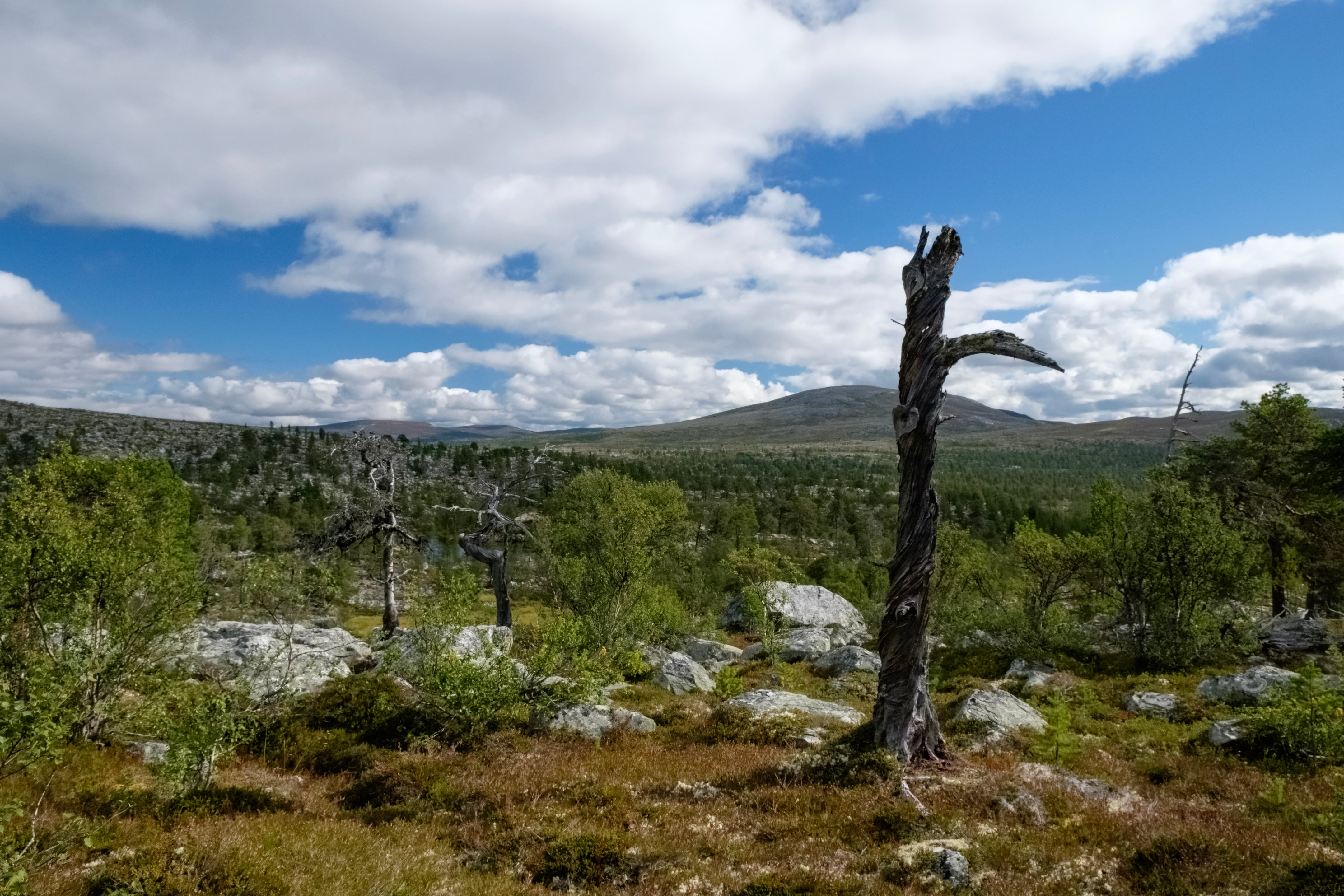 Some snapshots of a hike along the shores of Lake Femunden in central Norway, to the former mining town of Røros. From there, I took my packraft to cross the border to Sweden and explored countless lakes in the Rogen Nature Reserve, before crossing the bleak heights of Långfjället and finally arriving back at Femunden.